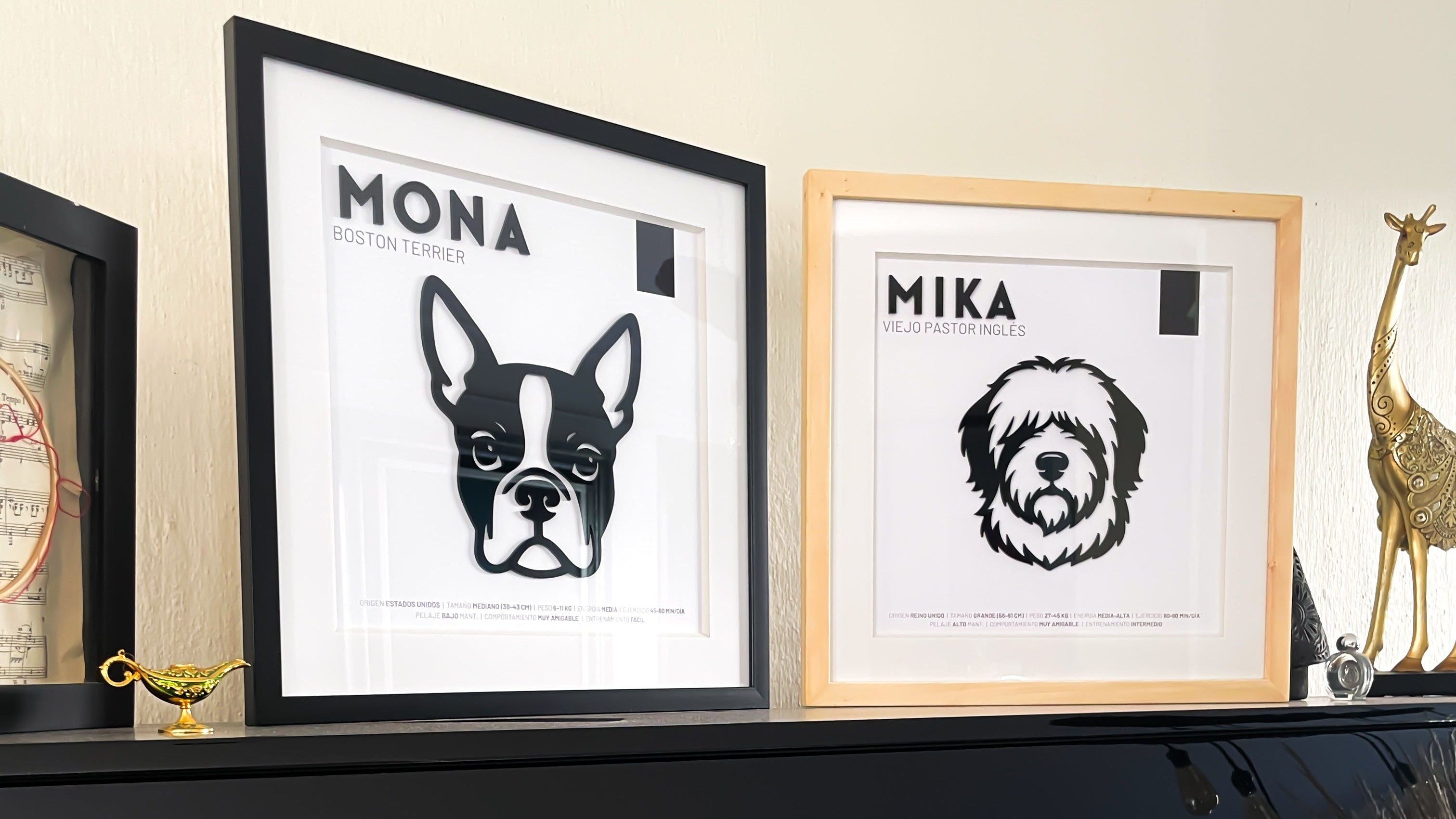Puedes seleccionar entre nuestros 3 tipos de marcos de calidad premium que vestirán a tu mascota.