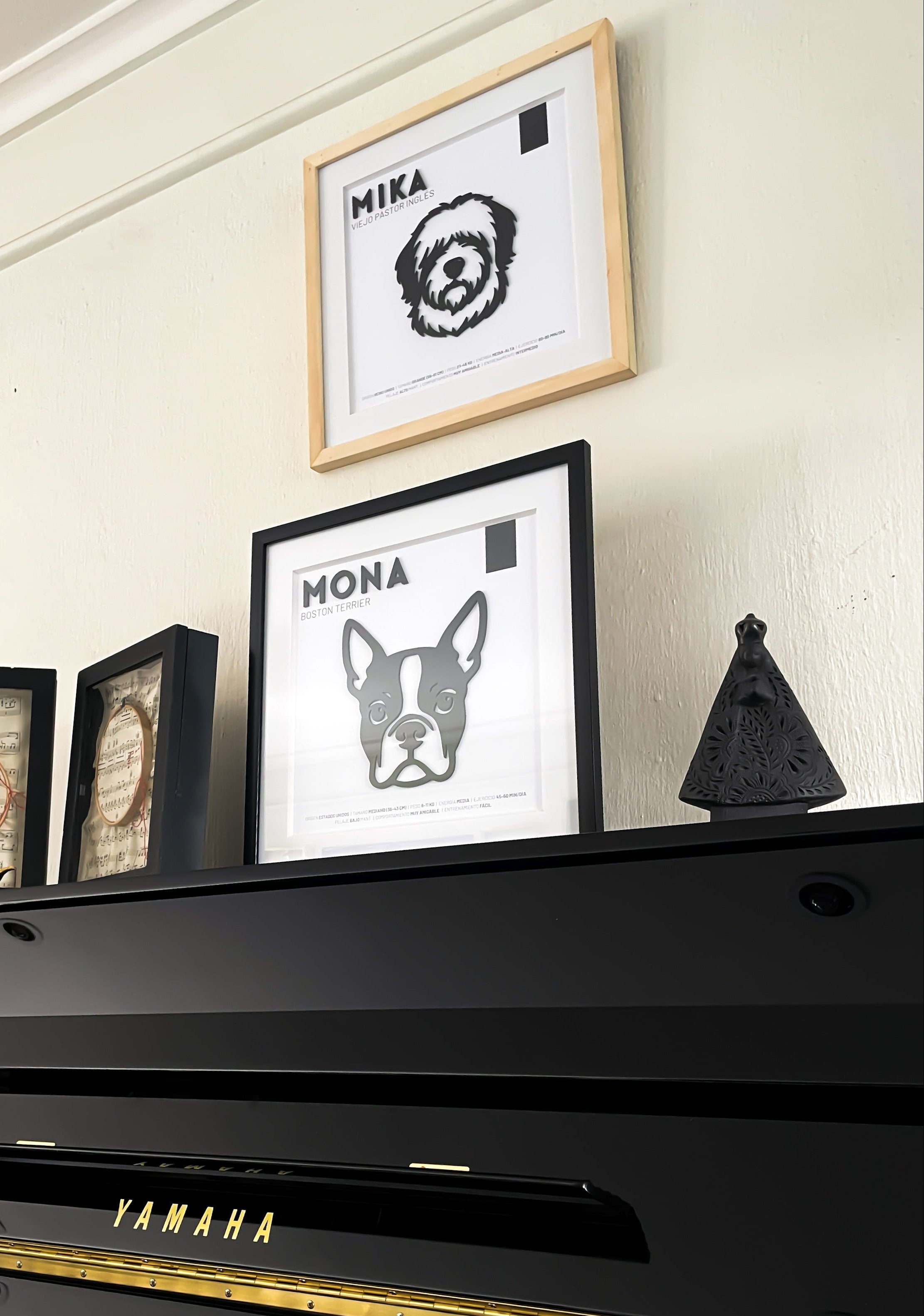 *Todas las opciones de marco cuentan con su vidrio de 3mm para su protección, marialuisa de Foamboard que hace resaltar la imagen de tu peludo y un montaje profesional para la protección a la humedad.