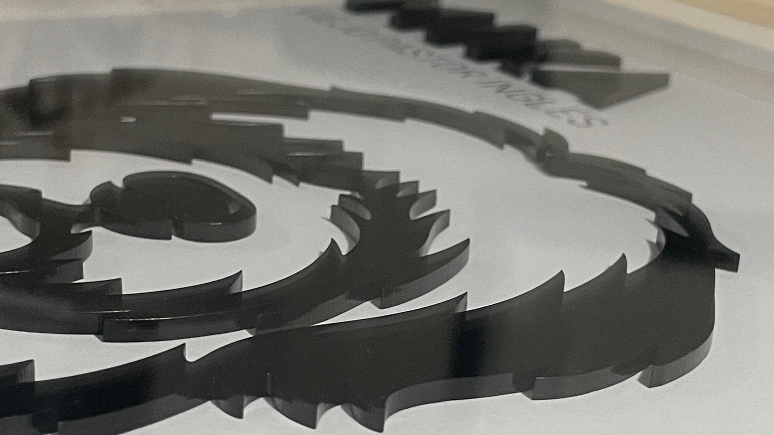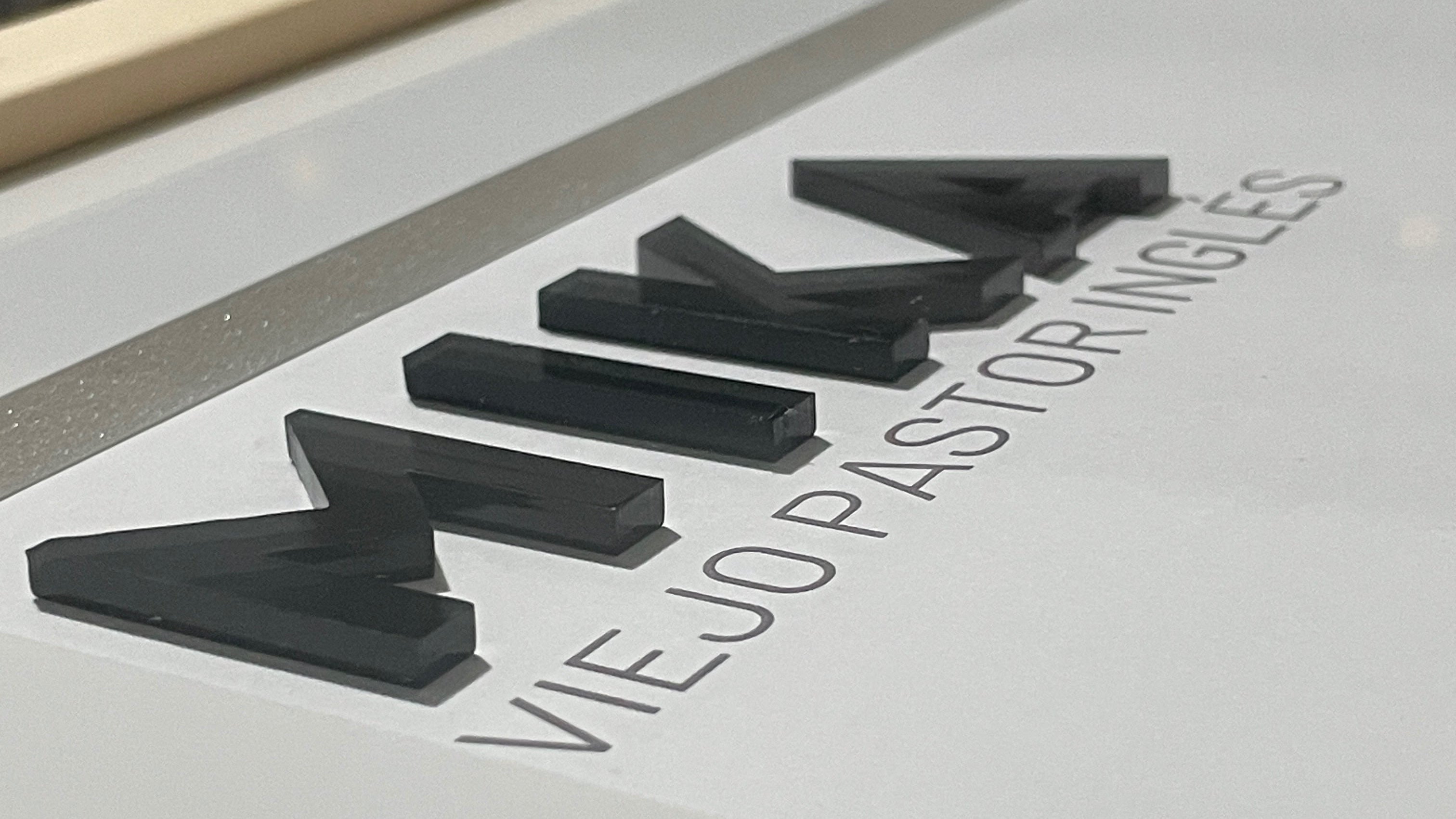 El nombre al igual que la silueta están en 3D hechas con acrílico negro de alto brillo.