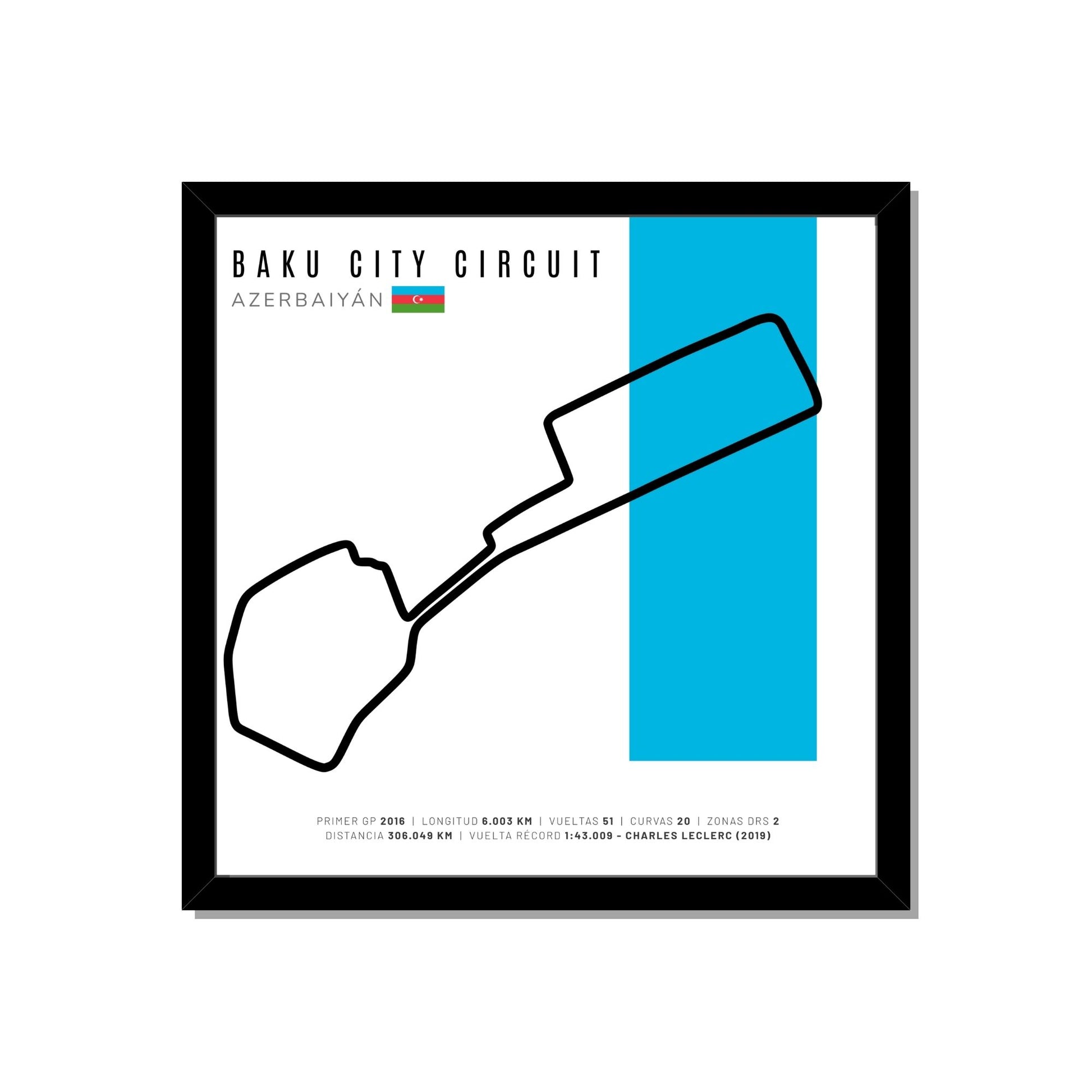 - Trazado de F1 – Baku City Circuit (Azerbaiyán) | Circuito 3D enmarcado en relieve 3D con acabado espejo.