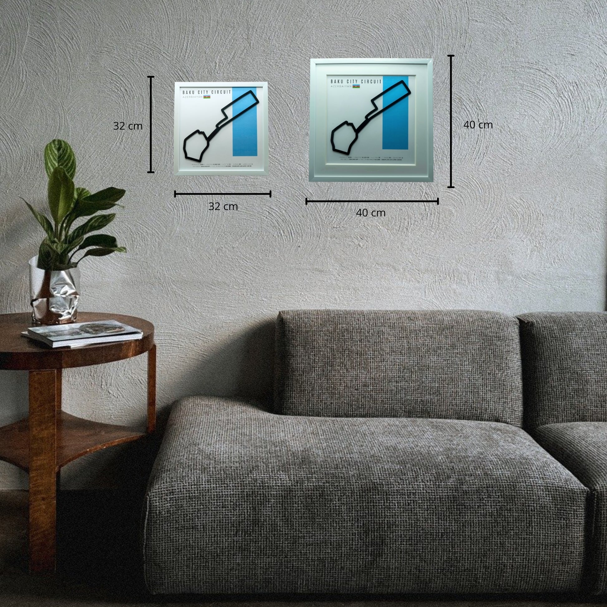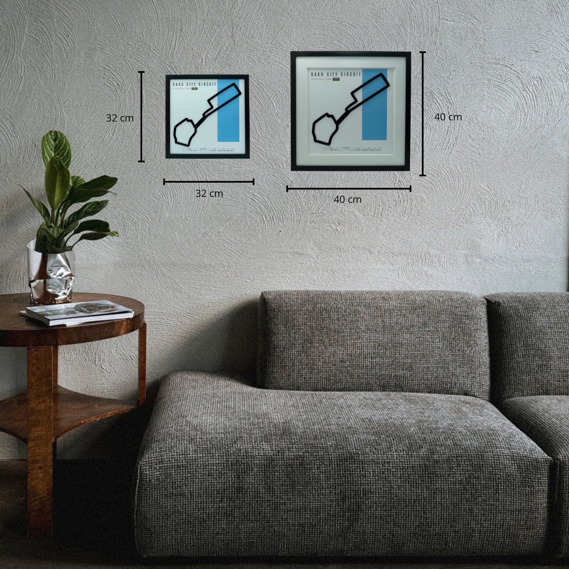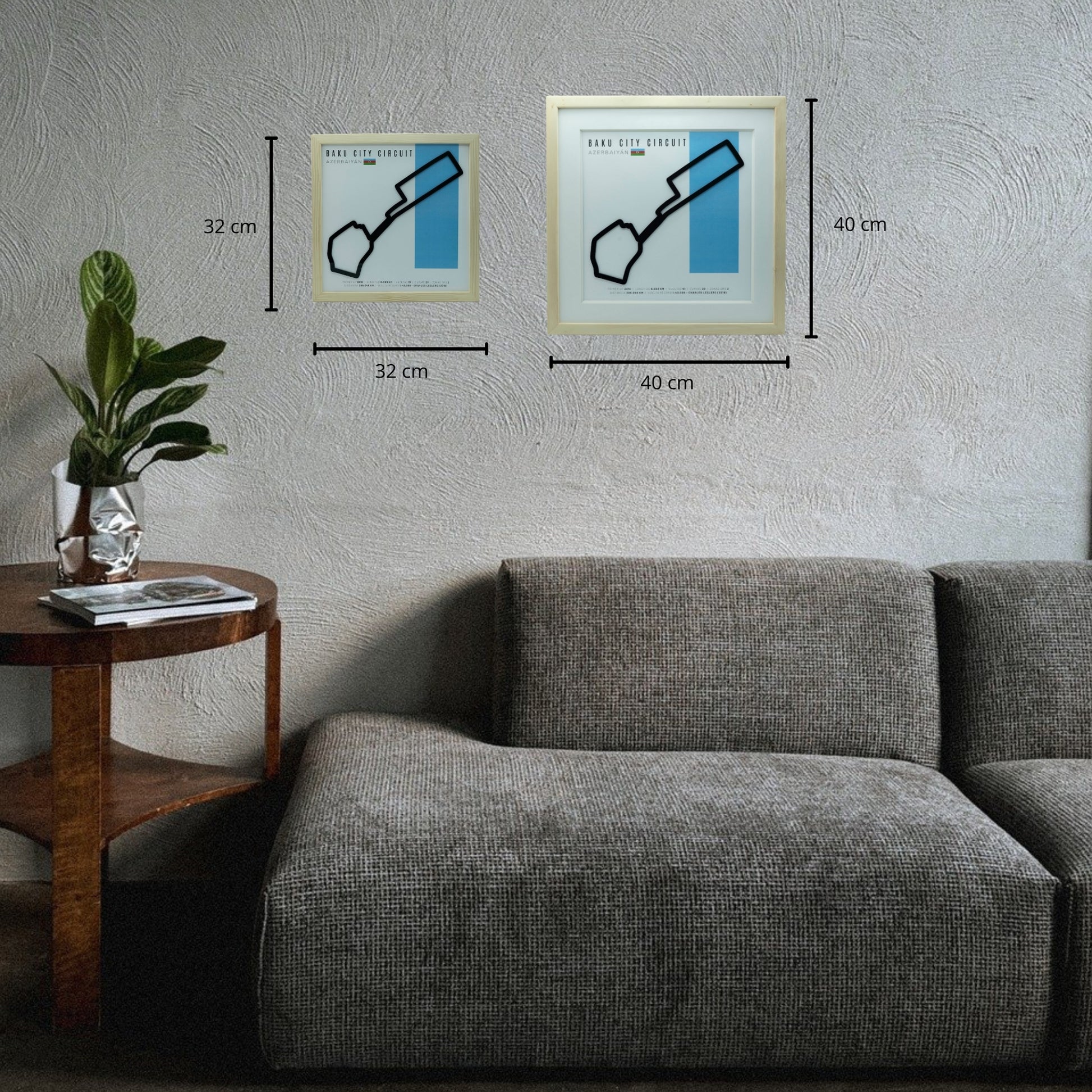 F1 – Baku City Circuit (Azerbaiyán) | Circuito 3D enmarcado en relieve 3D con acabado espejo, desarrollado sobre un diseño exclusivo del trazado. Enmarcado de calidad profesional y listo para colgar, ideal para dar presencia elegante a sala, estudio u oficina. Elige entre madera natural o molduras en negro/blanco fabricadas con poliuretano reciclado, ligeras y resistentes.