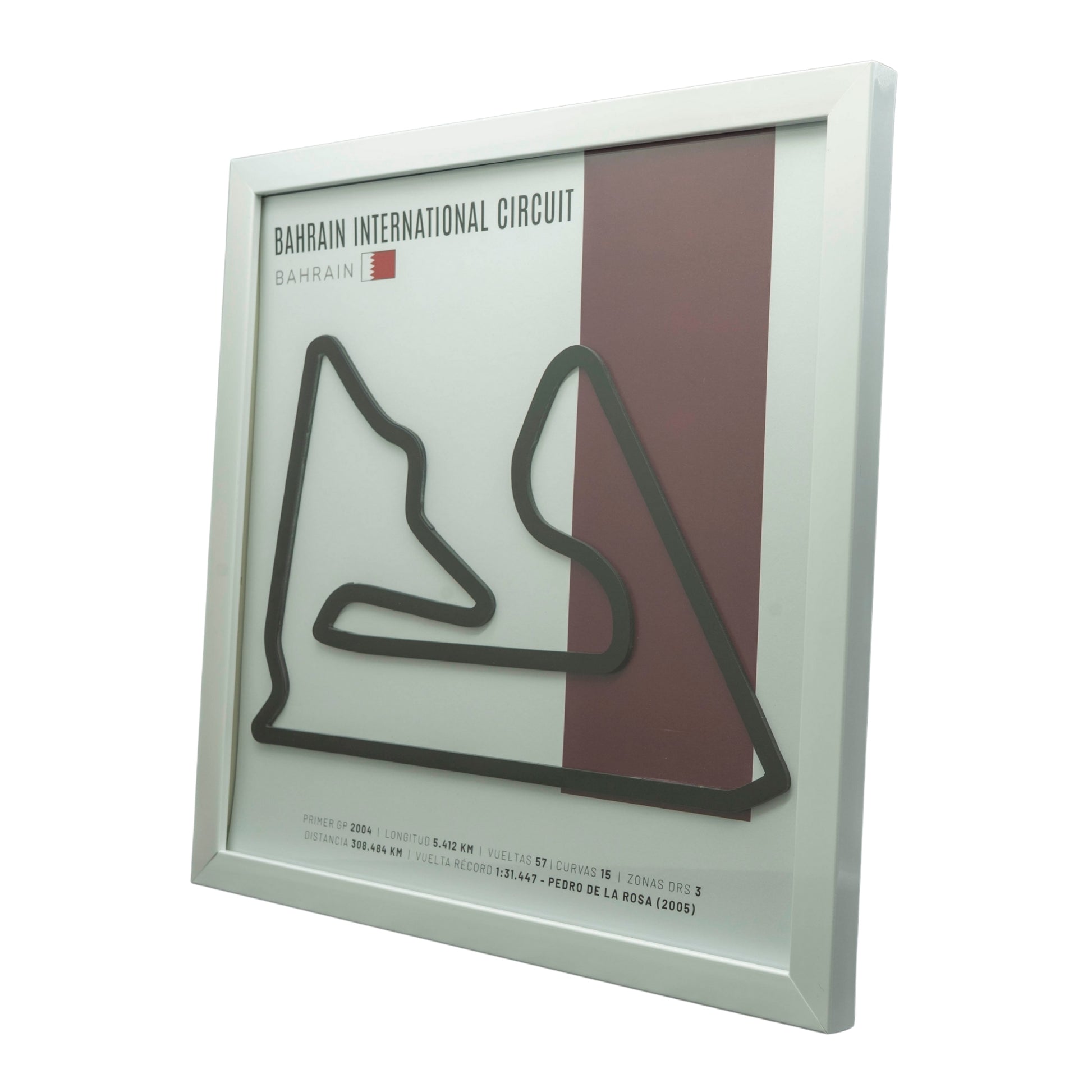 - Trazado de F1 – Bahrain International Circuit (Baréin) | Circuito 3D enmarcado en relieve 3D con acabado espejo.