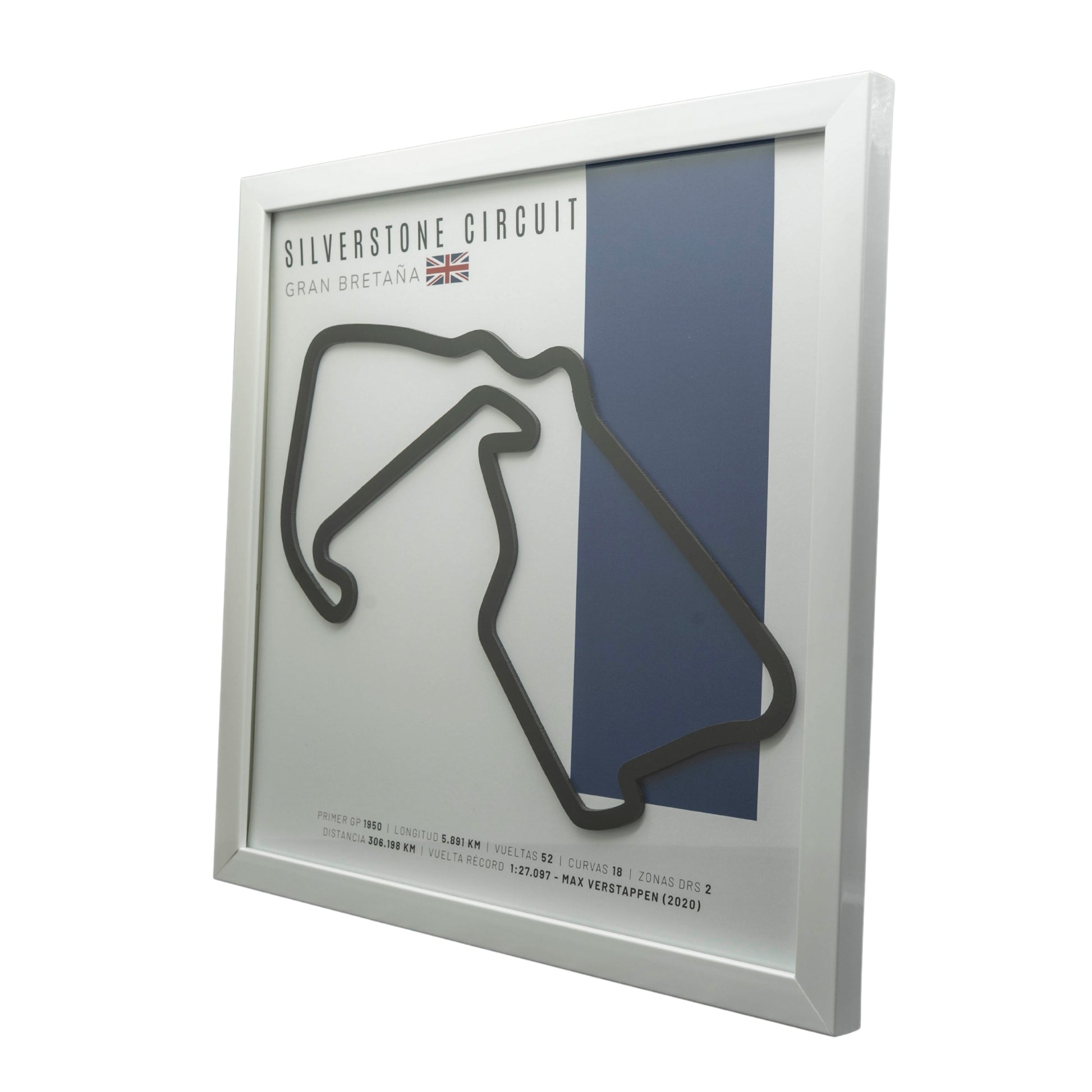 - Trazado de F1 – Silverstone Circuit (Gran Bretaña) | Circuito 3D enmarcado en relieve 3D con acabado espejo.
