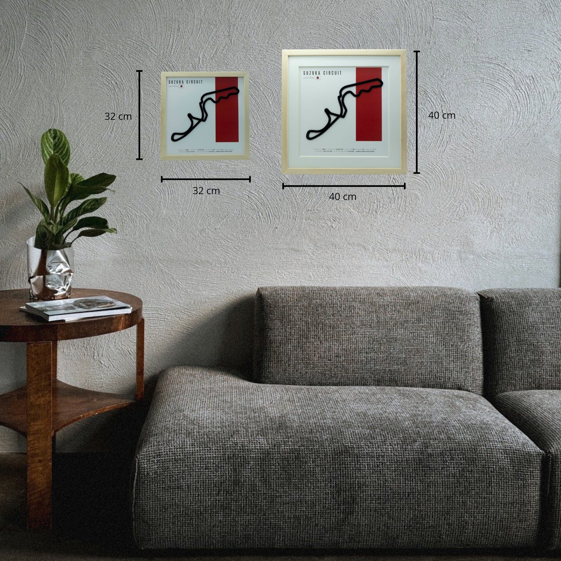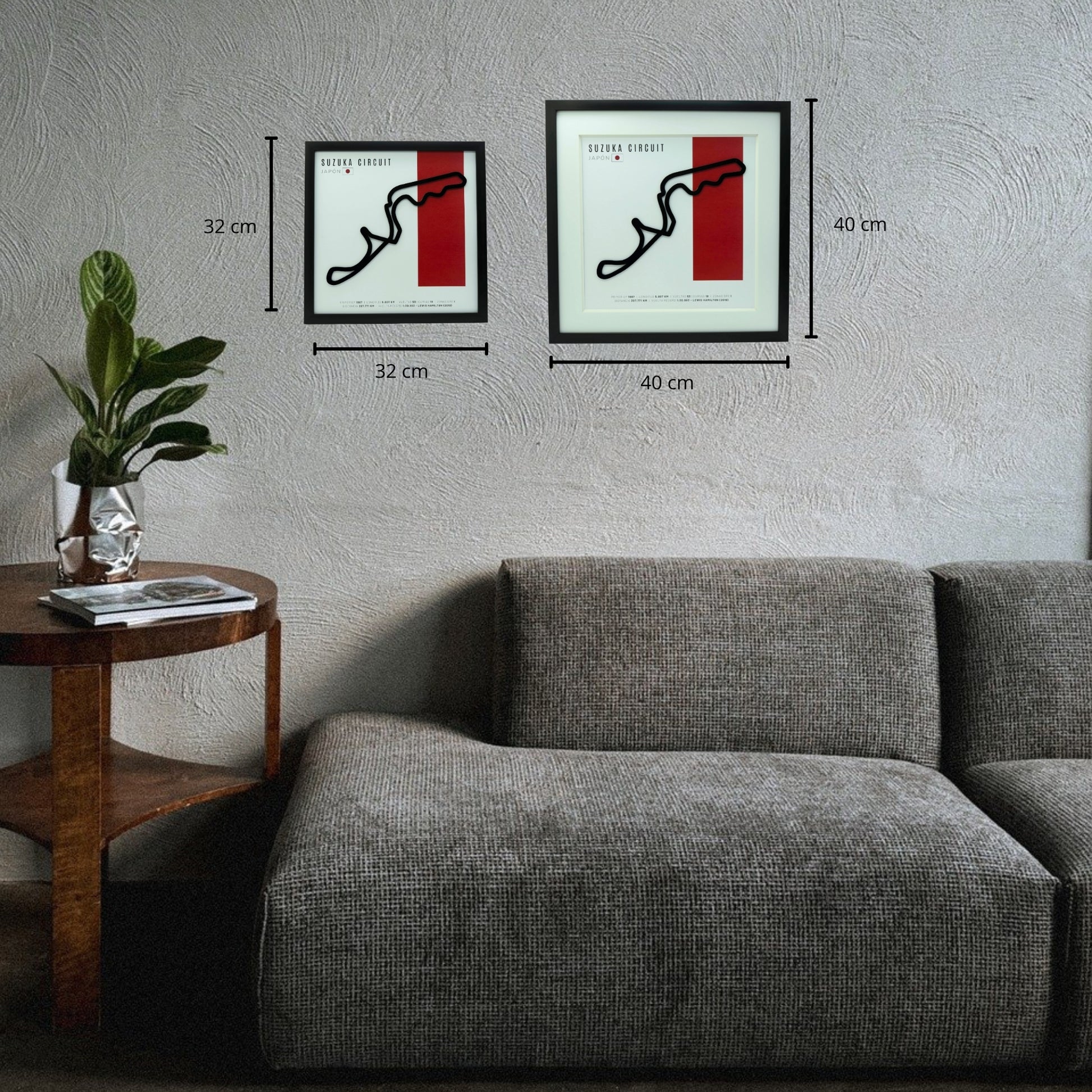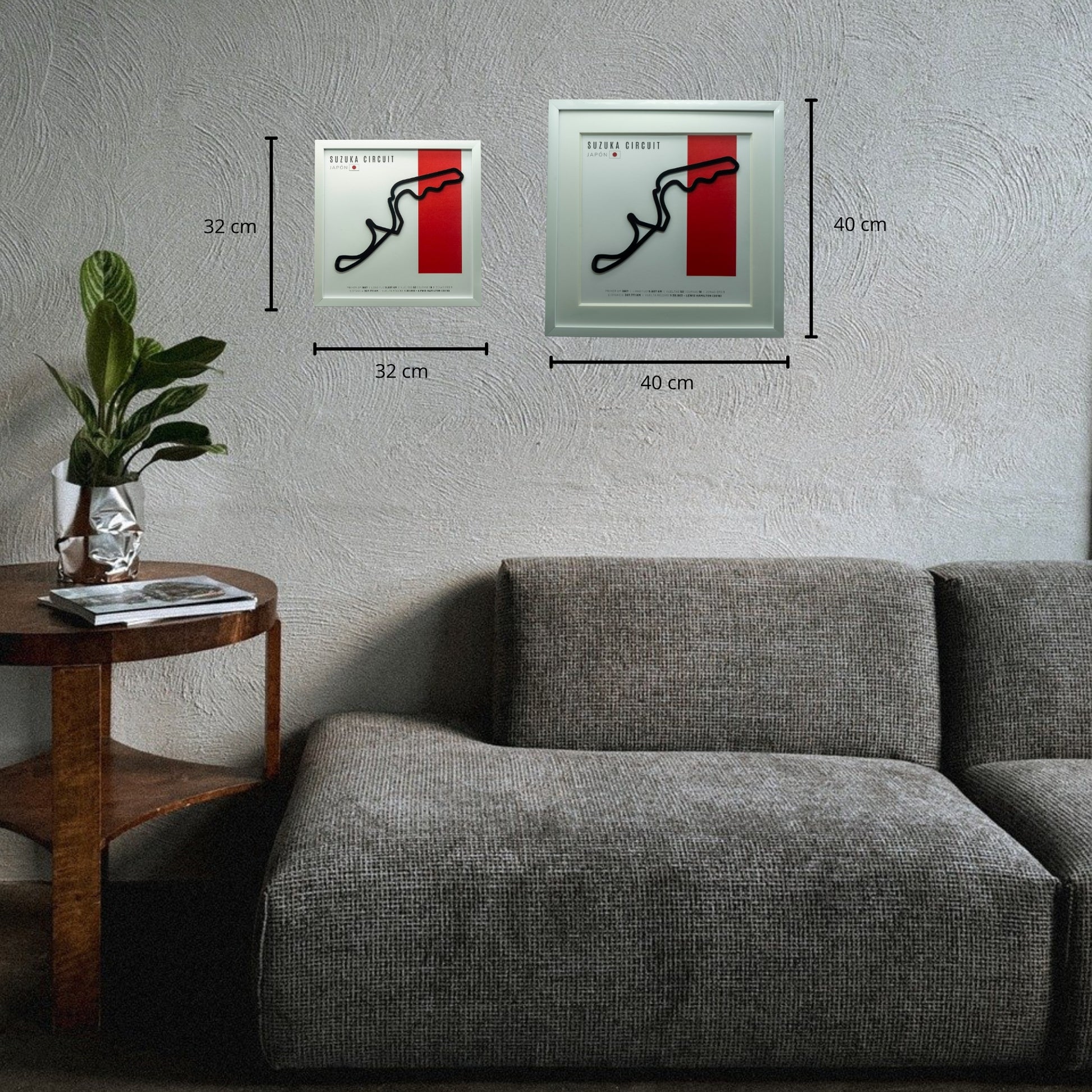 F1 – Suzuka Circuit (Japón) | Circuito 3D enmarcado en relieve 3D con acabado espejo, desarrollado sobre un diseño exclusivo del trazado. Enmarcado de calidad profesional y listo para colgar, ideal para dar presencia elegante a sala, estudio u oficina. Elige entre madera natural o molduras en negro/blanco fabricadas con poliuretano reciclado, ligeras y resistentes.