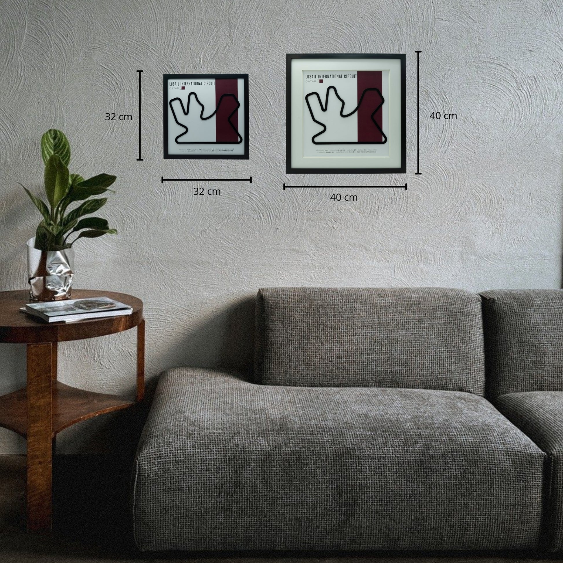 F1 – Lusail International Circuit (Catar) | Circuito 3D enmarcado en relieve 3D con acabado espejo, desarrollado sobre un diseño exclusivo del trazado. Enmarcado de calidad profesional y listo para colgar, ideal para dar presencia elegante a sala, estudio u oficina. Elige entre madera natural o molduras en negro/blanco fabricadas con poliuretano, ligeras y resistentes.
