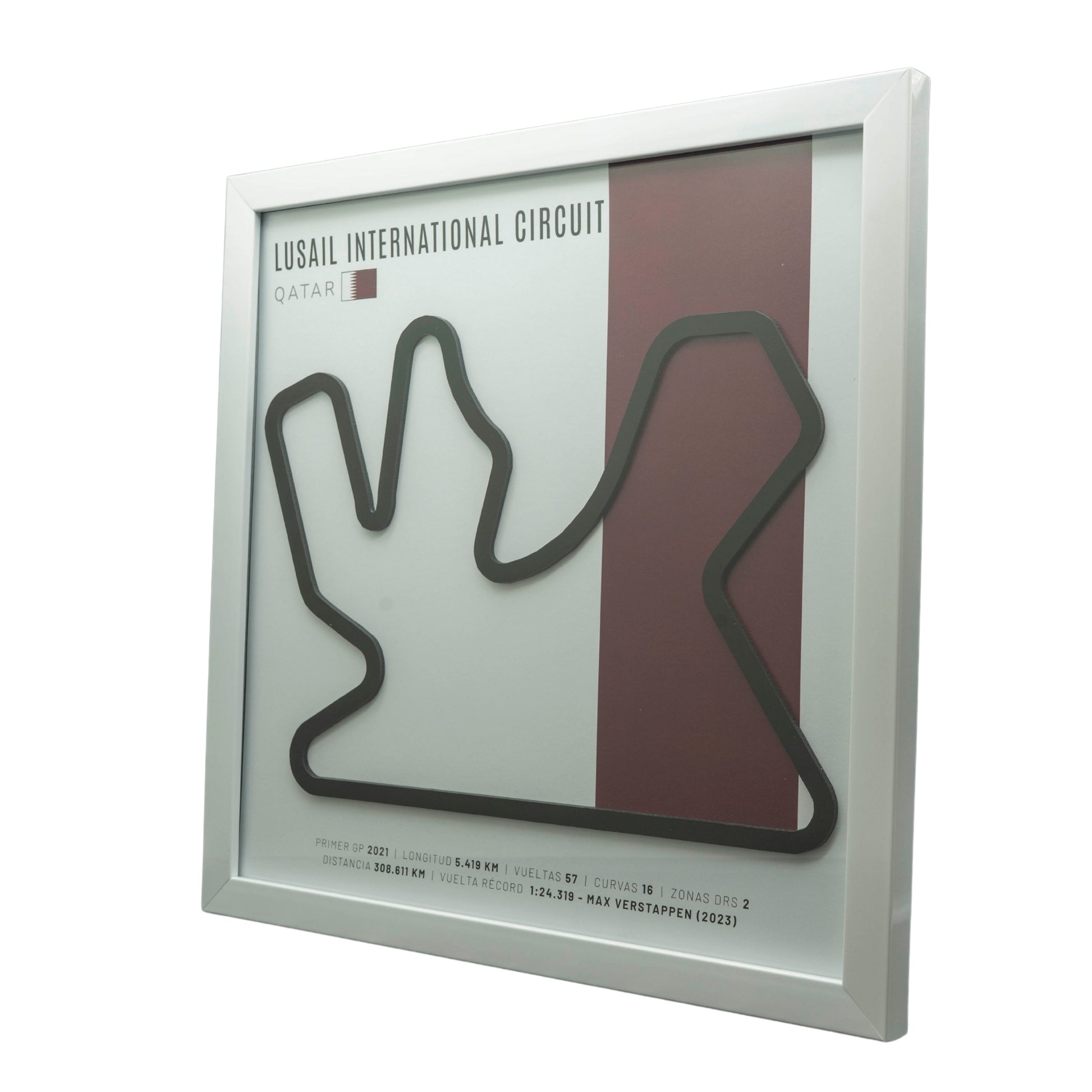 - Trazado de F1 – Lusail International Circuit (Catar) | Circuito 3D enmarcado en relieve 3D con acabado espejo.