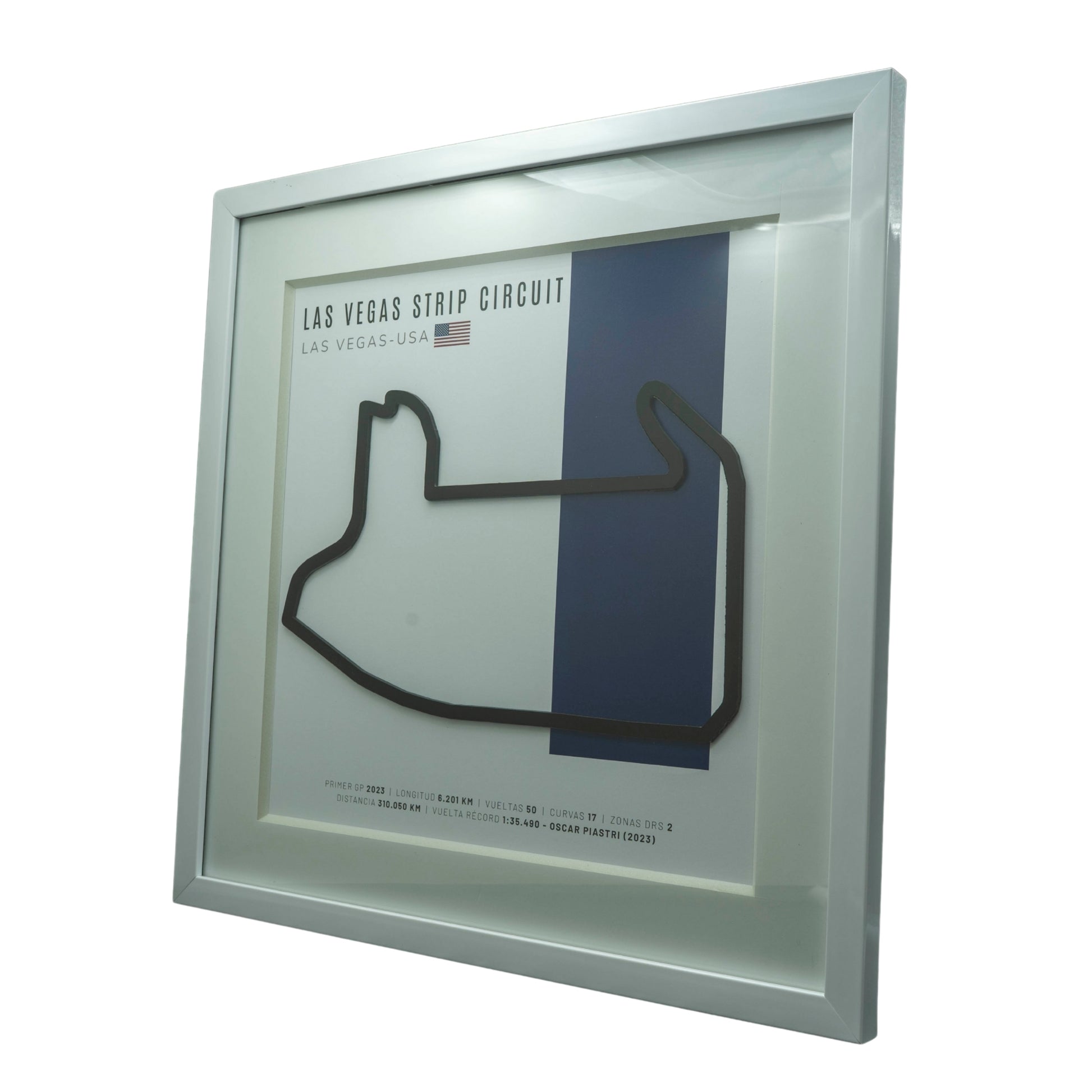- Trazado de F1 – Las Vegas Strip Circuit (Estados Unidos) | Circuito 3D enmarcado en relieve 3D con acabado espejo.